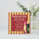 This original and fun punk rock bride and groom wedding invitation design features a classic punk rock couple with pink and green mohawks over a red, orange and green striped background!