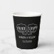 These minimalist paper cups with punk rock vibes are perfect for anyone who prefers weddings without a lot of flowers and fancy stuff. They have a simple black and white colour scheme with tattooed fingers at the top spelling out "TRUE LOVE" and the couple's names and wedding date below in a typewriter style font.
