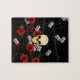 Punk Themed Skull And Rose Black Jigsaw Puzzle