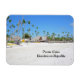 palm trees, grass huts and white sand on a beach in Punta Cana in the Dominican Republic