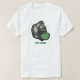 Tshirt Puppy Hood Green avec sur l'avant, illustration de cagoule de puppy play et le nom du puppy, vous pouvez le personnaliser en changeant le nom, pour vous ou la personne à qui vous offrez le tshirt. En haut du dos, impression d'une patte de puppy dans le même style graphique que l'avant du tshirt