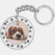 Joli porte - clé amoureux des chiens avec photo de chiot et cadre empreintes de pattes de chien. Empreintes de pattes noirs sur arrière - plan blanc. Cliquez sur Personnaliser ce Modèle pour remplacer la photo de chiot par votre propre photo de chiot Instagram et créer votre propre design unique. Un cadeau personnalisé pour les amateurs de chiots ! Si vous souhaitez en modifier davantage, vous pouvez remplacer certains empreintes de pattes par du texte personnalisé ou un nom de chiot.