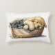 Cute watercolor golden retriever puppy and grey kitten sleeping in a basket on white background.