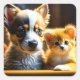 Puppy Dog and Orange Kitten Ai Art Square Sticker