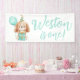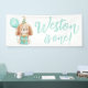 Decorate your Dog themed birthday party with this adorable puppy dog banner featuring a cute, watercolor dog holding a present and balloon while wearing a birthday party hat. It's perfect for the little boy who loves dogs! Easily customize the wording with the online editor.