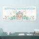 Decorate your puppy dog themed birthday party with this adorable banner featuring a cute, watercolor dog surrounded by his dog house and birthday presents and balloons. Customize the wording with the online editor.