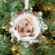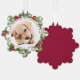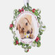 Decorate your tree or give a special gift this holiday season with this elegant pet photo in a wreath design christmas ornament, and matching decor. This dog christmas ornament features a watercolor green and red wreath with holly and berries. Personalize with name front, year back . This pet christmas ornament will be a favourite among pet lovers, dog lovers, and animal lovers. Visit our collection for matching pet photo christmas cards, home decor, and gifts. COPYRIGHT © 2020 Judy Burrows, Black Dog Art - All Rights Reserved. Puppy Dog First Christmas Custom 2 Photo Mistletoe Ornament Card