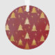 Custom photo Christmas ornament in red with gold Christmas trees and editable wording. The photo template is set up for you to add your puppy dog or other pet picture, as well as his name and the year, so the wording reads "[pet name's] First Christmas ~ [year]".