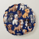 Puppy Dog Navy Blue Pattern Design Round Pillow