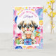 Cute birthday card for girls. Cute for a child or adult. A puppy dog holding a birthday cupcake surrounded by gifts. You can customize the card by adding a name in the personalize area. Cute puppy and birthday pun inside along with a colouring page.
