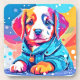 A colourful and cute art design of a puppy wearing a blue coat (This Design Made With AI). Place Order Today and Embrace the Joy of Shopping!