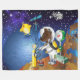 Artist by Zolotareva. Amazing adventures for little discoverers. Incredible journey. cosmos cartoon.Dog astronaut and alien. Caravans of cosmic ships with Dog on board leave in search of a replacement planet.