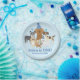 This cute puppy party features dogs with birthday hats and is personalizable with name and birthdate.