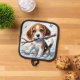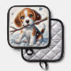 Puppy Playing in the Snow with a Stick in Winter Pot Holder