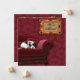 Red damask velvet sofa with black and white puppy dog change of address announcement.