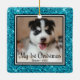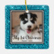 This lovely Puppy's 1st Christmas photo ornament with an aqua glitter edge, the words "My 1st Christmas", your dog's name and the year will look beautiful on your tree. You'll cherish it and enjoy taking it out every year to put on your tree.