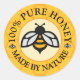 Cute labels for your pure honey products. A honeycomb background and a black and yellow bee inside a pale yellow circle in the centre of the design. Around the edge are text templates to add the details of your product.