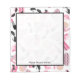 Un bloc-notes avec un design composé de lunettes de soleil pour chat rose et noir rétro, des sacs à monnaie rose avec pois gris, des sacs à main rose avec arc noir, des rouges à lèvres roses, des pierres précieuses roses et une bouteille de parfum avec atomiseur rose.