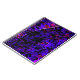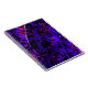 A notebook with a bright purple abstract art design cover.