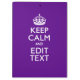 Your personalized Keep Calm saying on a fine custom deep purple accent colour style decor. A personalized Keep Calm style saying on a one of a kind gift. Humourous or whimsical try on your creative words on two editable lines of text. Remember to use CAPITAL letters for best results.