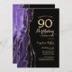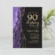Purple, black and gold agate 90th birthday party invitation. Elegant modern design featuring watercolor agate marble geode background, faux glitter gold and typography script font. Trendy invite card perfect for a stylish women's bday celebration. Printed Zazzle invitations or instant download digital printable template.