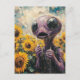 Purple Alien in a Sunflower Field Postcard