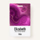 Personalized name badge with an elegant abstract design. Dark purple amethyst colour with ribbons of gold nestled between layered strata. Rich and beautiful design.