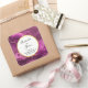 Wedding thank you stickers with an elegant abstract design. Dark purple amethyst colour with ribbons of gold nestled between layered strata. Rich and beautiful design. Layered over top is a white circle frame with a faux gold foil border, with your personalized text inside.