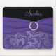 This elegant looking purple and black damask mousepad has a matching faux ribbon and crystal brooch. Customize it with your own name, monogram, or other text.