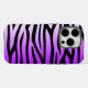 A sassy purple and black zebra print pattern is featured on this iPhone case.