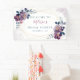 Purple, indigo blue, and pink watercolor flowers and foliage featuring a gold geometric frame personalized bridal shower banner.
