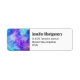 Address labels with a cosmic abstract background. Swirling vibrant colours of light blue, pink and purple. White stars scattered around.
