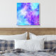 Canvas print with a cosmic abstract background. Swirling vibrant colours of light blue, pink and purple. White stars scattered around.