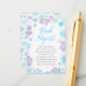 This elegant and glamourous book request enclosure card features watercolor purple and turquoise blue faux glitter snowflakes and sparkles on a white background. It is perfect for a winter or Christmas themed baby shower.