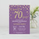 70th Birthday Invitation with Purple and Gold Glitter Diamond Background. Gold Confetti. Adult Birthday. Male Men or Women Birthday. For further customization, please click the "Customize it" button and use our design tool to modify this template.
