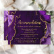 This elegant and glamourous wedding accommodations card can be customized with important information for your guests such as hotel and lodging reservations or recommendations. The design features a purple agate marble background with faux gold glitter accents. The text combines handwritten script and modern sans serif fonts for a classy and sophisticated look. This will be perfect for autumn fall and winter weddings.