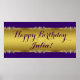 Elegant purple and gold birthday party banner poster. This beautiful purple and gold birthday banner is easily customized for your event by simply adding your text in the font style, size and color of your choice. You can also change the background color to whatever shade you need.