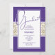 Damask band in gold and white bordered in purple on these graduation party invitations. PRE-DONE COLORS done in our store. **TIP: To change the colours, click on customize further link, enter your colour hex code in the #xxxxxx box to match your school colours.