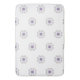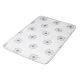 A fractal art design in purple and gold is tiled across this bath mat.  The design has a floral look.  The background is white.  Matching bathroom accessories are available.