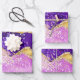 Purple and Gold Glitter Agate Pattern Wrapping Paper Sheet