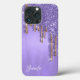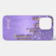 Elegant phone case done in a purple foil look with faux purple and gold glitter paint dripping down, from the top of the case. Personalize the text for yourself or as a chic gift idea for her.