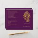This elegant design, called Purple and Gold Glitter Indian Wedding, has a purple background. On the front there is a gold glitter style border design with Lord Genesha in the centre to ward off any obstacles. Towards the bottom is the couple's name in gold. The back has a purple background with your text in gold. This set has invitations, save the date cards, response cards, thank you cards, table number cards, wine labels, wedding programs, and many more day-of wedding stationery pieces, favours, and gifts to coordinate. All elements are printed on our high quality products, they do not include any real gold, jewels, embossing, or other textile elements. All designs are copyright Noteable Expressions, Inc. All rights reserved.