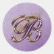 Purple and gold bevel-look monogram with gold stars and glitter on a purple damask background. If you would like this design on another product, please email shutterbug600@yahoo.com