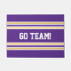 This bold purple door mat, featuring gold coloured stripes, adds a pop of colour. Customize with your name or message.