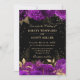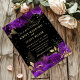 Elegant Purple and Gold Watercolor Roses clipart with gold glitter and diamonds on black background