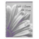 Create a unique advice book or guest book when you personalize the pretty Purple and Grey Floral Highlights Wedding Spiral Notebook with the names of the bride and groom and their marriage ceremony date. This elegant customized botanical nuptial note book features a digitally enhanced black and white floral photograph of a gerber daisy flower blossom with purple highlights and a silver grey background.