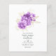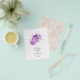 Shimmering purple floral wedding invitation with faux foil ivory foliage and distressed ivory damask reverse. Ideal for any given theme or garden wedding. Envelopes are not included. For thicker invitations with envelopes included and matching products on the same theme please see the collection below.