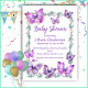 This stunning purple and lavender butterfly baby shower invitation features a beautiful ivy border adorned with elegant butterflies.