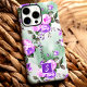 This elegant phone case showcases a stunning watercolor design of purple and lavender roses, accented by soft greenery on a light green background. The intricate floral details create a timeless and romantic aesthetic, perfect for lovers of feminine and botanical designs. Featuring a bold purple monogram, this case offers a stylish and personalized touch. It's an ideal accessory for everyday use or as a thoughtful gift for someone special.