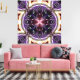 This striking design features a kaleidoscopic blend of rich purples, deep magentas, and subtle touches of orange and white, forming a radiant starburst symmetry. The swirling cosmic textures create a sense of depth, resembling galaxies and nebulae woven into a geometric mandala form. Its glowing centre radiates outward with bold contrast, giving the design a mystical, futuristic, and visually captivating energy.